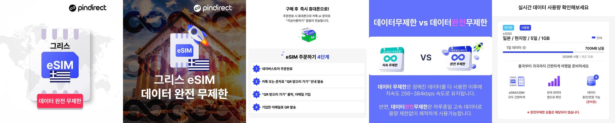 이탈리아 이심 남유럽 통합 eSIM 완전무제한 데이터 1일 500MB (그리스, 스페인, 포르투갈 등 사용가능)