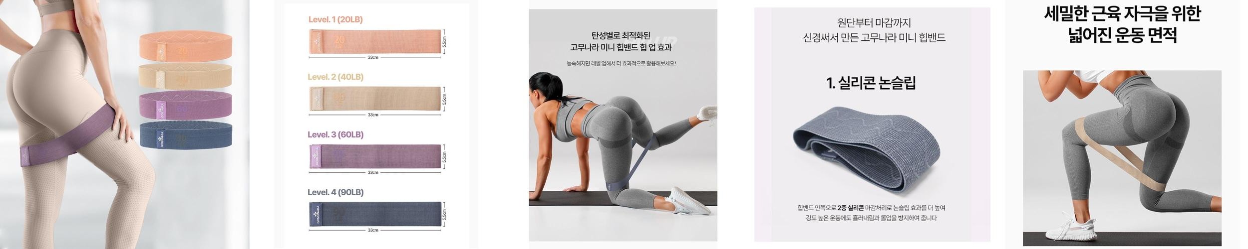 또한, 내부 실리콘 그립이 적용되어 있어 운동 중 밴드가 말려 올라가는 불편함이 없습니다. 이로 인해 보다 집중적으로 운동에 임할 수 있습니다. 고무나라 슬림 힙밴드는 가벼운 무게로 휴대가 용이하여 홈트레이닝은 물론 야외 운동에도 적합합니다.