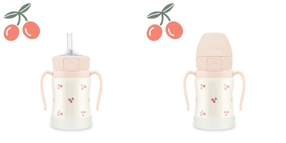 그로미미 스텐빨대컵 어린이집 아기보온물병 체리쉬 200ml