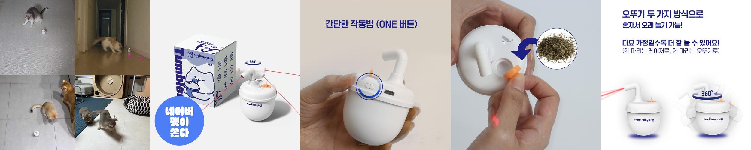 내구성이 뛰어나고, 오뚜기처럼 다시 일어나는 구조로 편리하게 사용할 수 있습니다. 내꼬냥 고양이 텀블러 레이저 멀티 자동 장난감은 반려동물의 놀이 시간을 더욱 즐겁고 유익하게 만들어 줄 것입니다.