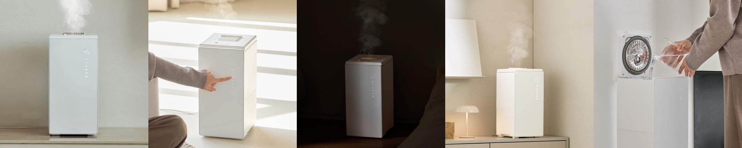 가열식 방식으로 물때와 곰팡이 걱정이 없으며, 겨울철에는 공기를 데워주는 효과도 있습니다. 소음이 적어 수면 중에도 방해받지 않으며, 백색소음 수준의 조용한 작동을 자랑합니다. 습도 센서와 AI 기능이 추가되어 목표 습도에 도달하면 자동으로 꺼지는 기능이 있어 편리합니다.