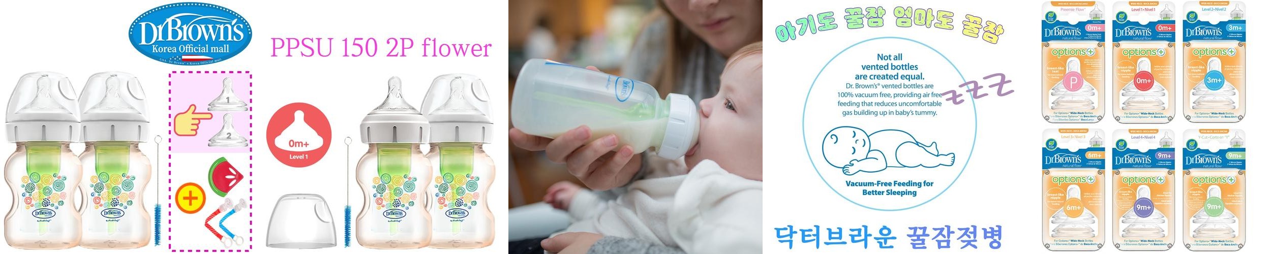 - 상품명: 닥터브라운 오피셜 / PPSU 젖병 와이드넥 150ml 4개,꼭지선택/치발기/홀더 옵션선물