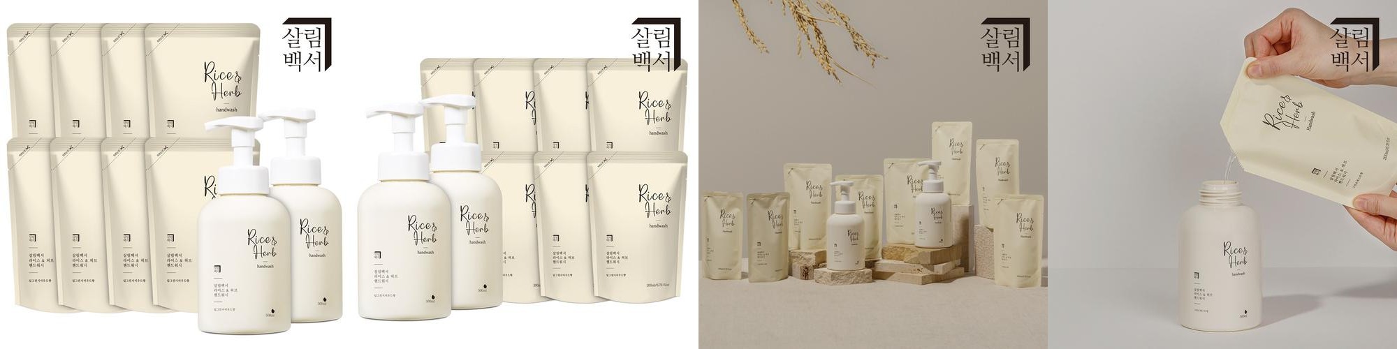 • 상품명: 라이스&허브 핸드워시 손세정제 본품 500ml 2개 + 리필 8개 딥그린시더우드