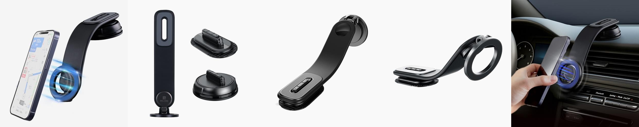 상품 소개: 멜리언스 맥세이프 차량용 거치대는 다양한 장점으로 차량 내에서의 스마트폰 사용을 더욱 편리하게 만들어주는 제품입니다. 이 거치대는 강력한 접착력을 자랑하여 어디에나 쉽게 부착할 수 있으며, 특히 긴 연결대를 통해 운전 중에도 눈앞에서 스마트폰을 간편하게 거치할 수 있습니다. 360도 회전 기능을 제공하여 운전석과 조수석 간의 위치 변경이 용이하며, 다양한 각도로 조정할 수 있어 최적의 시야를 확보할 수 있습니다.
