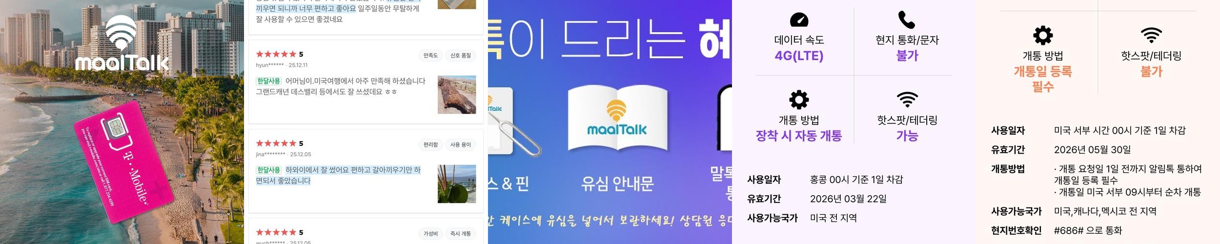상품 소개: 미국유심 하와이 뉴욕 5G 티모바일 데이터 통화 무제한 1일 유심칩은 미국 전역에서 안정적인 데이터 통신과 통화 서비스를 제공합니다. 이 유심칩은 5G 네트워크를 지원하여 빠르고 원활한 인터넷 사용이 가능합니다. 특히, 무제한 데이터와 통화 서비스는 여행 중 언제 어디서나 자유롭게 소통할 수 있는 장점을 제공합니다.