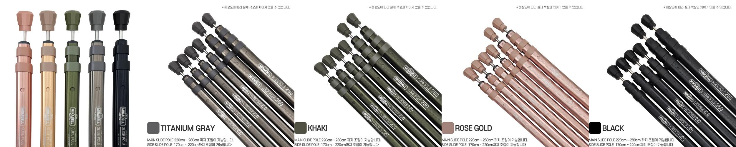 미라벨가든 슬라이드 캠핑 타프 텐트 폴대 사각 높이조절 슬라이딩 사이드폴 220