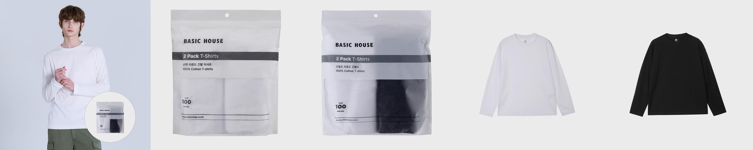 - 상품명: 베이직하우스 면 긴팔 티셔츠 2팩 20수 30수