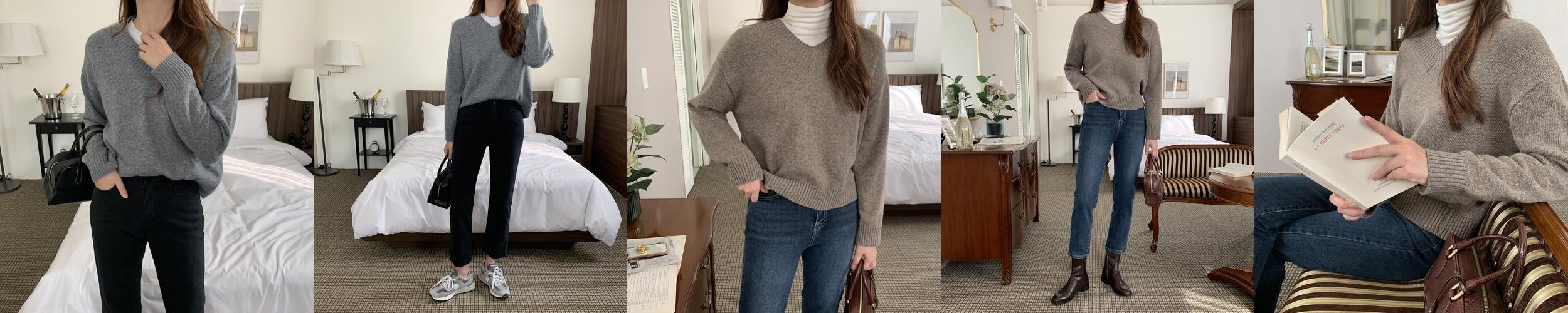 - 태그: 니트 여성의류 봄가을패션 브이넥니트 캐시미어라이크