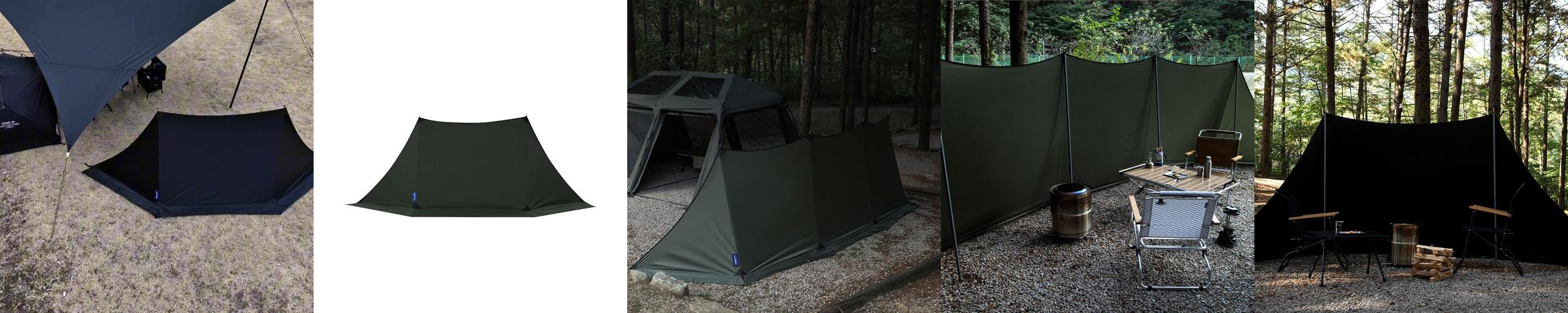 설치 후 형태가 깔끔하게 유지되어 독립된 공간처럼 느껴지며, 프라이버시를 보장합니다. 조리 공간, 테이블 세팅, 장비 세팅이 용이하여 캠핑 시 다양한 활동을 지원합니다. 특히 바닷가와 같은 바람이 강한 환경에서도 효과적으로 성능을 발휘하여 체온 유지에 도움을 줍니다.