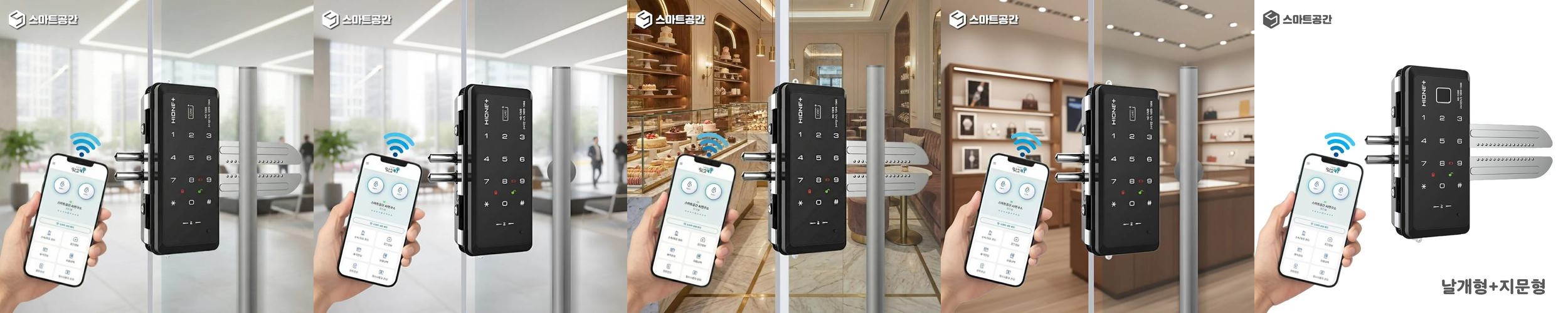 스마트공간 IoT 유리문 도어락-지문 카드키 무인 매장 상가 픽업 강화유리 원격 잇소키