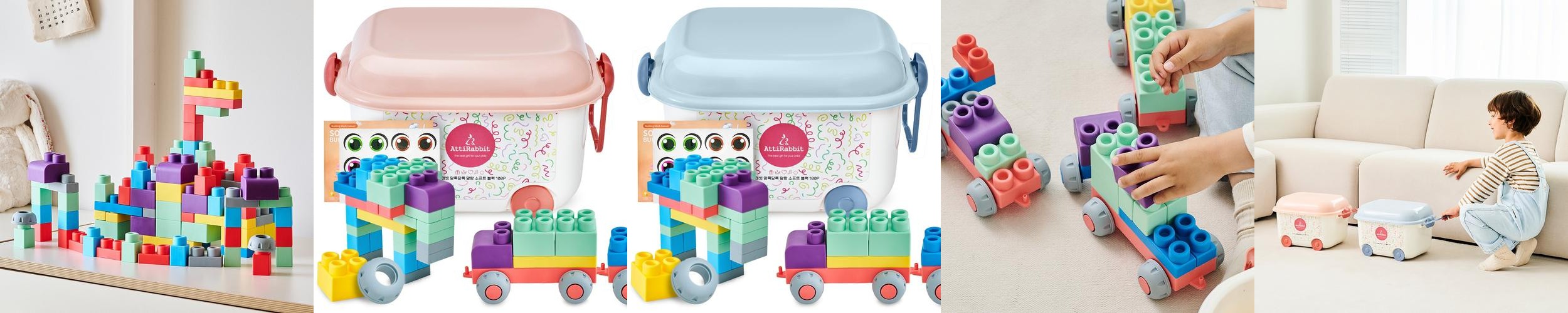 아띠래빗 말랑 소프트 블럭 아기 유아 대형 빅 블록 쌓기 놀이 장난감 베이비핑크 100P
