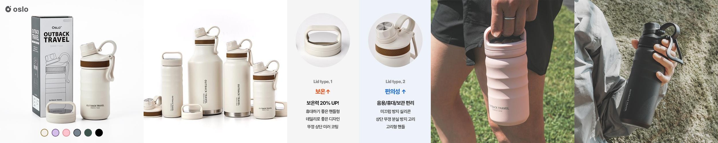 오슬로 아웃백트래블 스텐 손잡이 텀블러 보온병 350ml + 추가 보온뚜껑