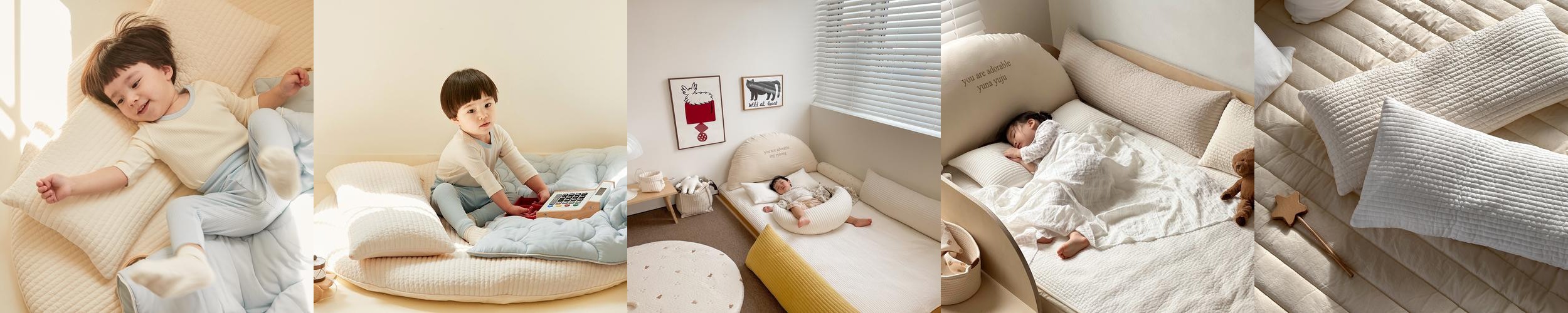 무형광 소재로 제작되어 아기에게 안전하며, 부드러운 촉감이 특징입니다. 원단은 탄탄하면서도 부드러워 아기가 기대거나 발로 차도 쉽게 형태가 무너지지 않습니다. 적당한 쿠션감은 아기를 안전하게 감싸주며, 편안한 수면 환경을 조성합니다.