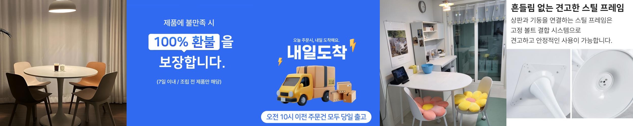 이 테이블은 적당한 크기로 좁은 공간에서도 효율적으로 배치할 수 있어, 작은 아파트나 방에서도 유용하게 사용할 수 있습니다. 또한, 가벼운 무게로 이동이 용이하여 필요에 따라 쉽게 위치를 변경할 수 있습니다. 가격 대비 뛰어난 가성비를 자랑하며, 여유분의 부품이 제공되어 추가적인 걱정 없이 사용할 수 있습니다.