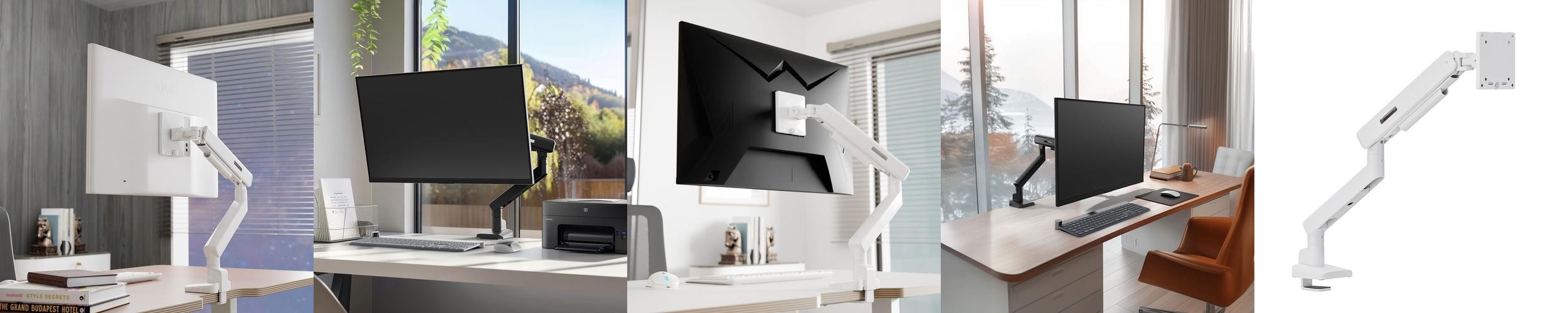 제품의 디자인은 세련되고 깔끔하여 다양한 환경에 잘 어울립니다. 강력한 내구성을 자랑하며, 모니터를 안정적으로 지지해 줍니다. 각도 조절이 용이하여, 사용자가 원하는 최적의 시야각을 설정할 수 있습니다.