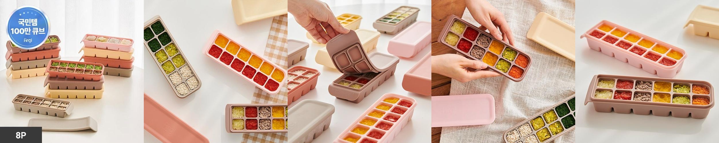 - 상품명: 퍼기 이중밀폐 이유식 실리콘 큐브 큐브틀 보관 용기 종합 세트 6구+4구+12구 (8P)