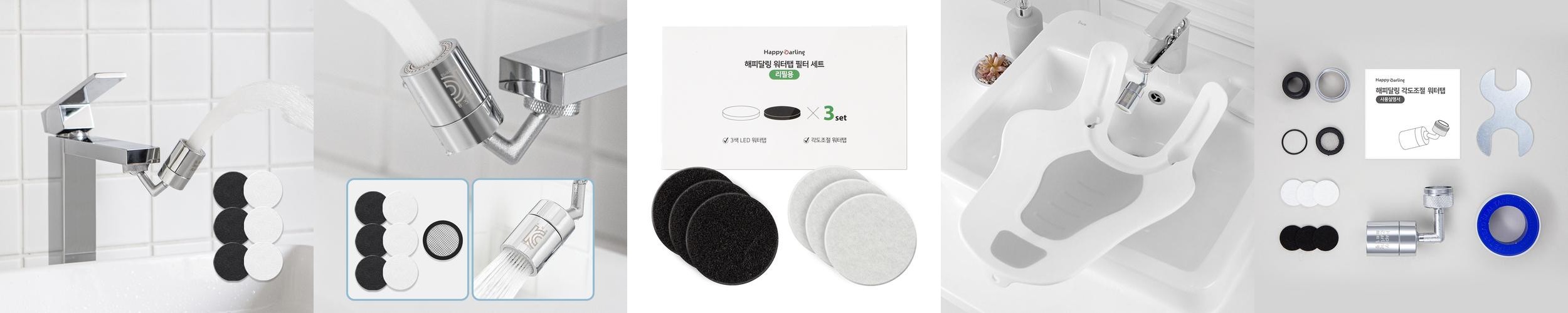 해피달링 720도 세면대 워터탭 아기 비데 수전 교체 수도꼭지+필터 3p 세트