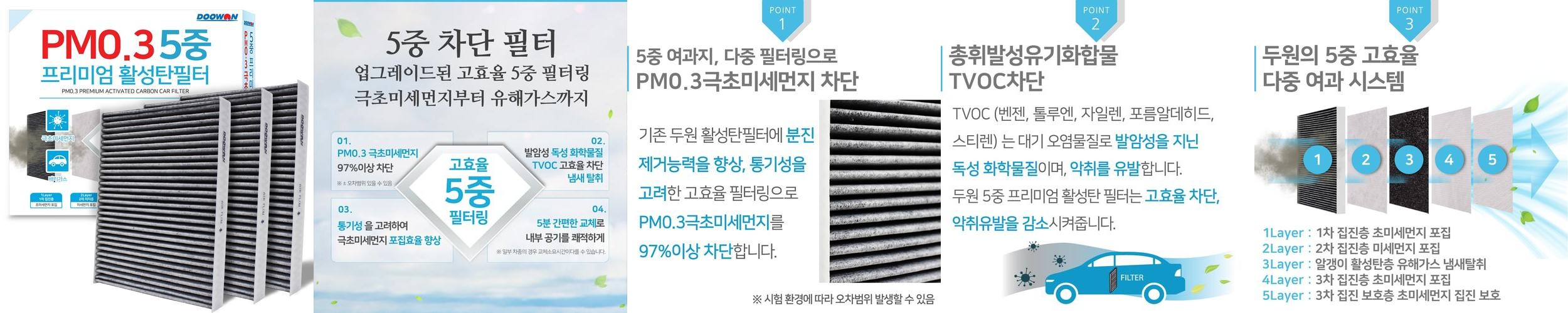• 상품명: [호환] 두원 PM0.3 5중 프리미엄 활성탄 자동차 차량용 에어컨필터 2+1 PK88