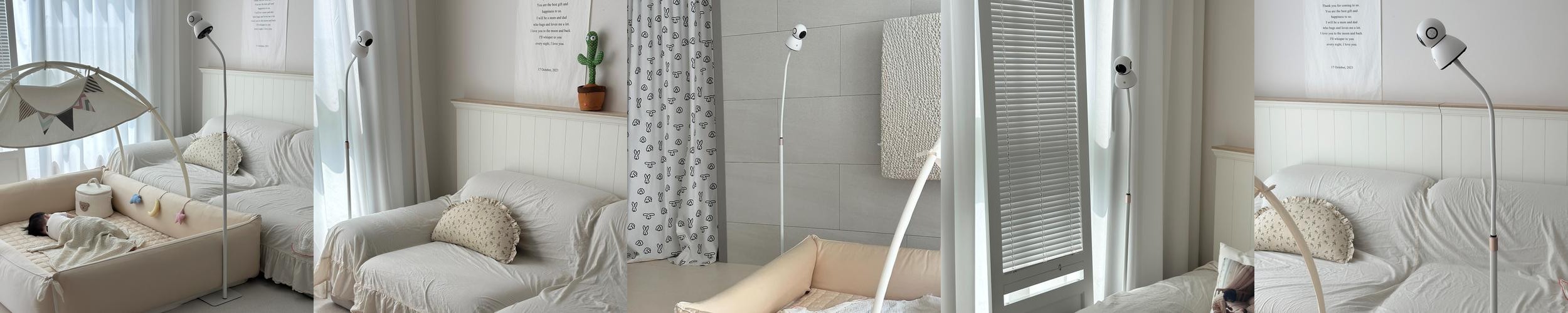 높이 조절이 가능하여 아기 침대나 거실 등 다양한 장소에 적합하게 사용할 수 있습니다. 부드러운 받침이 덧대어져 있어 이동 시 소음이 적어 사용자의 편의를 고려하였습니다. 이 제품은 홈캠과의 호환성이 뛰어나며, 설치 후에도 안정적인 성능을 제공합니다.