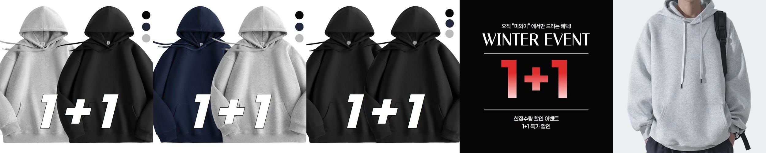 • 상품명: [1+1] 남자 오버핏 후드티 무지 긴팔 후드 티셔츠