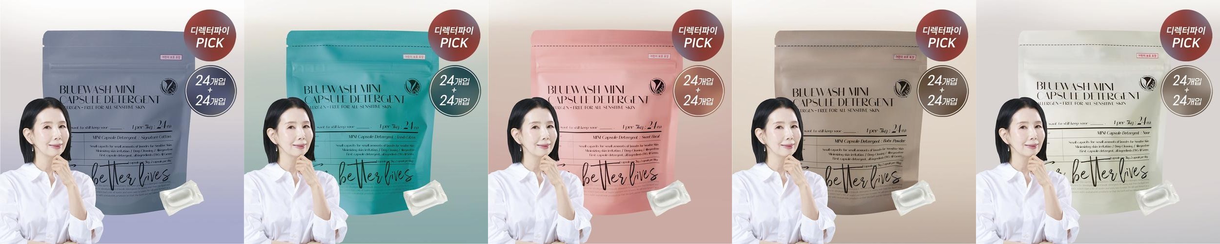 - 상품명: [2세트] 블루워시 미니 캡슐 세탁세제[시그니처 코튼향] 2개 24개입