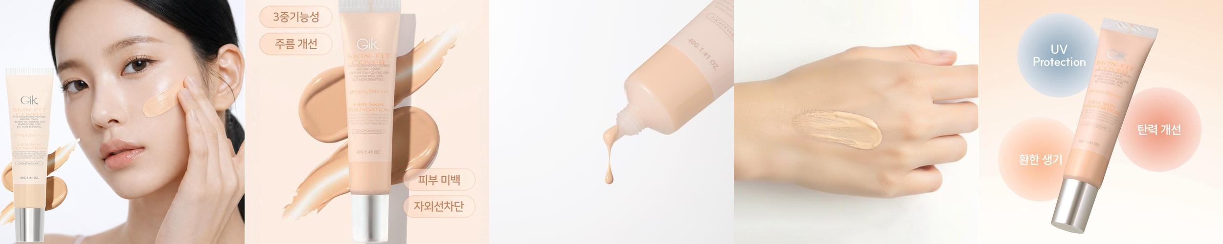 GIK 허스킨 3중 기능성 올인원 광채 밀착 커버 파운데이션 SPF50 원컬러, 40g