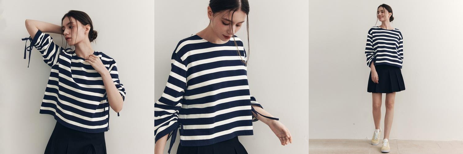 - 태그: 스트라이프티셔츠 리본소매 간절기패션 편안한핏 제로스트릿